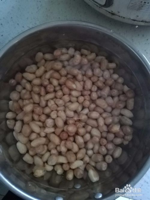 将花生装碗里,加入适量清水,再加入准备好的盐,浸泡10分钟后。