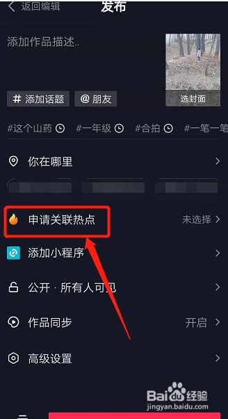 申请关联热点后,再发布作品即可上热门。