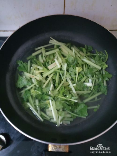 洗净后,把芹菜切段,烧开水,在水里过一下。