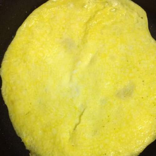 2取一只碗,打入鸡蛋,加2茶匙水,打散。平底锅加热,抹油,倒入蛋液,蛋液底部凝固后,翻面,熄火。了冷却后,取出切丁。