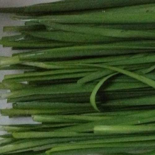 3韭菜洗净,控去水份,切碎,放入调馅用的容器内。