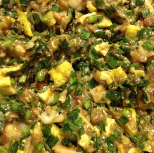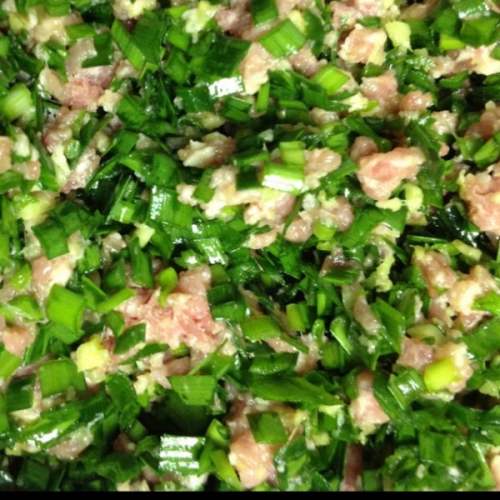拌入猪肉馅。