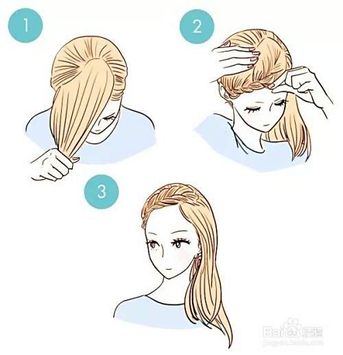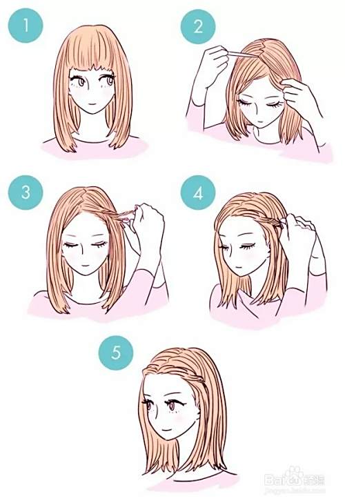分出一部分刘海,往耳后方向编辫子,在耳后用小橡皮筋扎好固定即可。
