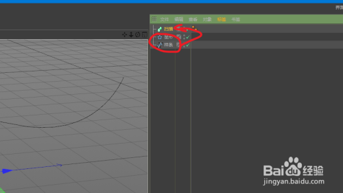 首先打开C4D软件,绘制一个要扫描的路径和截面图形,注意先画路径,后画截面;