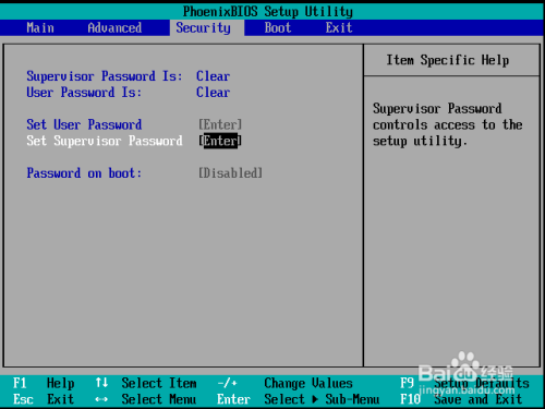 3.bios的Security页面,显示bios的安全设置,开机密码设置