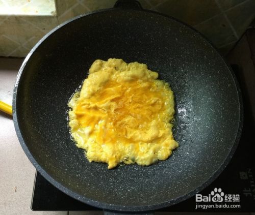 锅中倒入食用油,5成热时下蛋液,炒到凝固时盛出