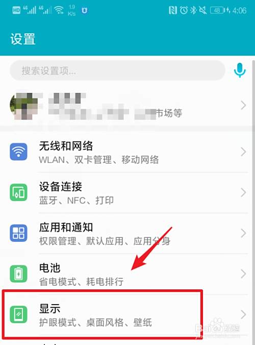 在设置选项里面,我们选择页面中的“显示”选项进入。