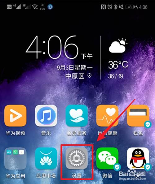 解锁进入我们华为P20手机后,在手机桌面找到设置图标,进入到设置中。