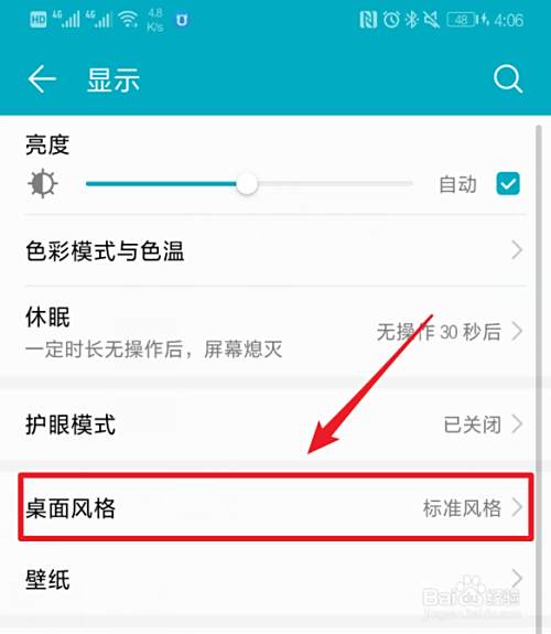 点击进入显示选项后,我们选择页面中的桌面风格进入。