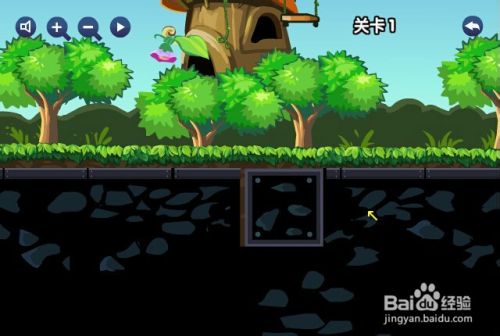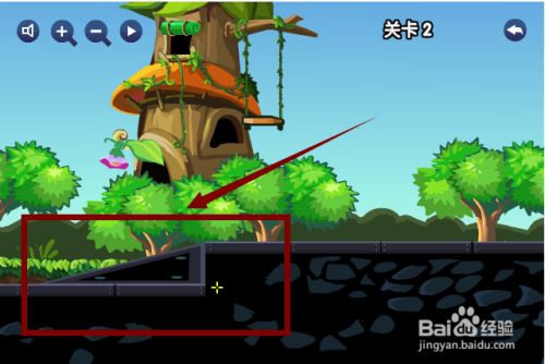 第一关,小火车的火车道上有一个大坑,这样小火车就过不去了,用鼠标点住大坑旁边正方形石头,把正方形石头拖进那个正方形大坑里面就可以了,这样小火车就过去了。