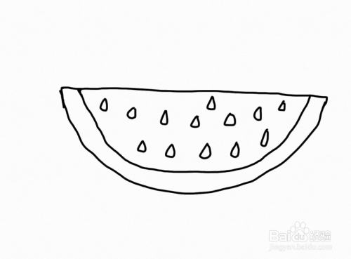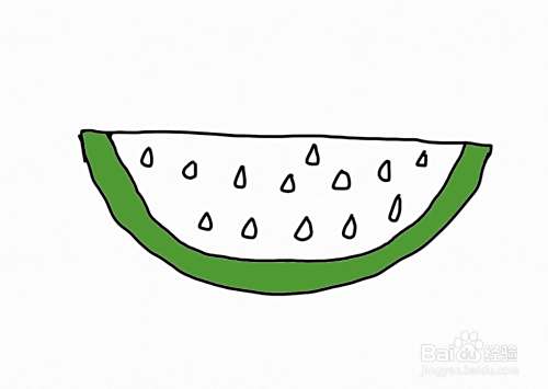 第三步,在西瓜果实上画出一些的小的雨点,也就是画出西瓜籽的形状。