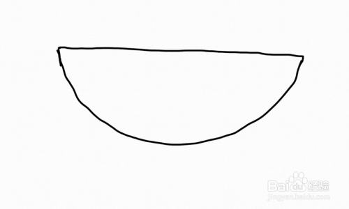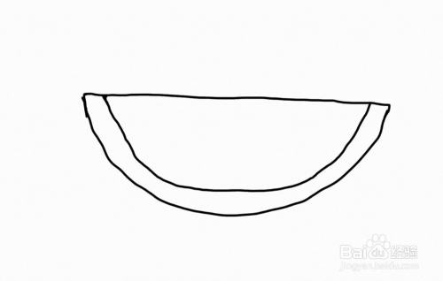 第二步,在半圆里,接着画出西瓜的厚度,画出西瓜皮的形状。