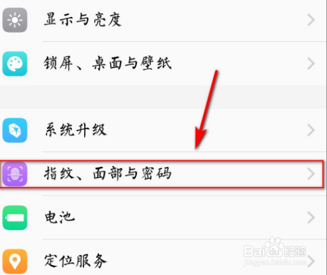 打开设置,在设置界面找到“指纹,面部与密码”并点击。