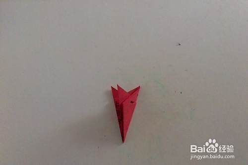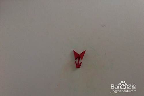 如图所示,从中间点向上折一角,另一角向后反折。