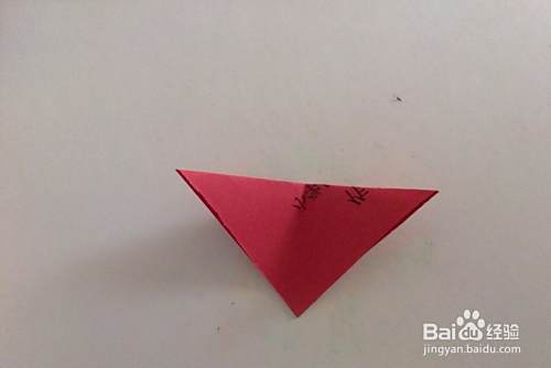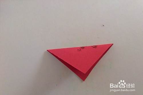 如图所示,把材料纸对角者,再沿长边折出中间点。