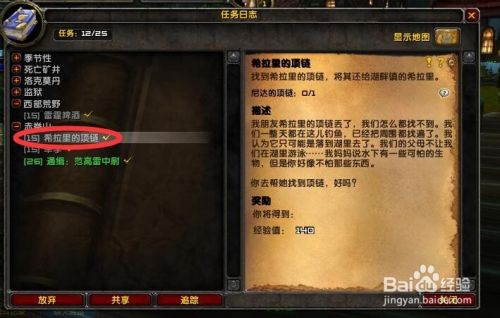 魔兽世界是一款非常好玩的游戏,有很多玩家来玩,任务体系很多。下面介绍一下赤脊山(15)希拉里的项链任务怎么做