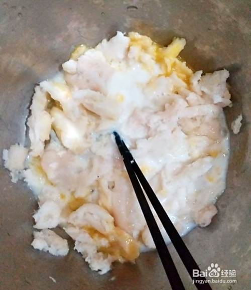 打入一颗鸡蛋,加入适量低脂牛奶,减肥期间一定要用低脂牛奶,再加入玉米粉。