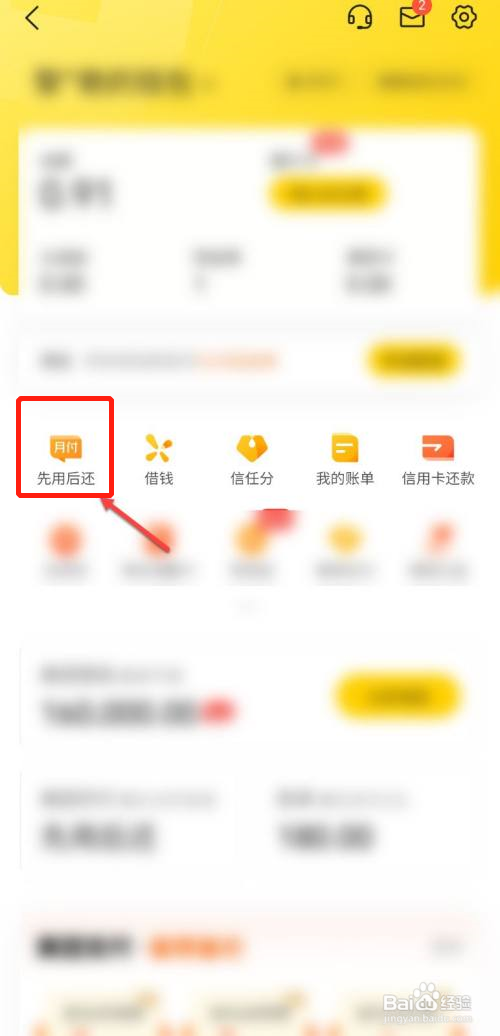 进入钱包界面,点击【先用后还】选项。