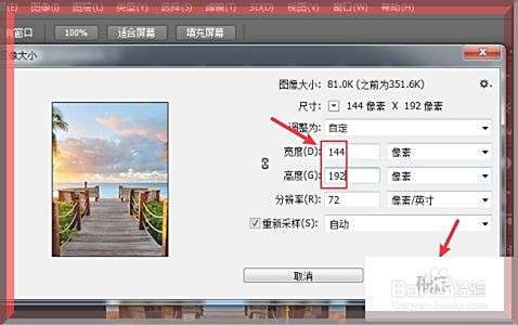 如图,这时我们设置【宽度】为144,【高度】为192,再点击“确定”。