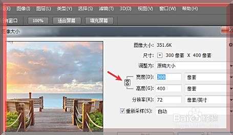 如图,此时我们需要在图像大小窗口,取消“限制长宽比”的图标。