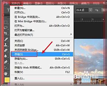 如图,当我们设置尺寸像素后,点击【文件】,再点击【存储】。