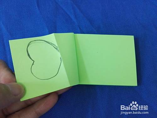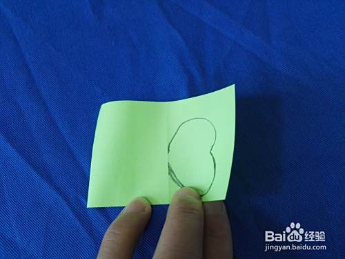将便签纸对折后,在折页上画上桃心,注意,桃心的尖要和曲别针的宽度一致。如图。