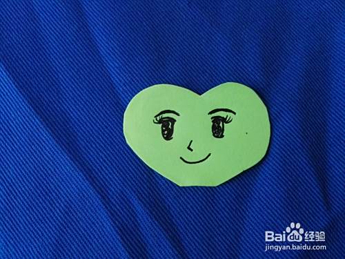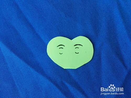 将桃心上画上可爱的笑脸。当然,写字也可以,这个随自己喜欢。如图。