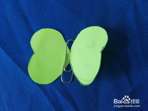 将桃心穿过曲别针,用胶棒将两边粘好。如图。