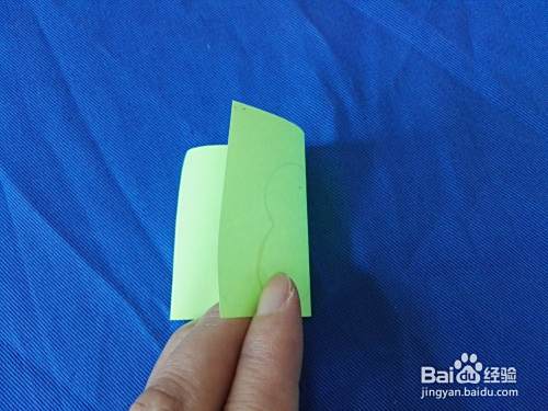 准备一张便签纸,最好颜色比较鲜艳!然后对折便签纸。如图。
