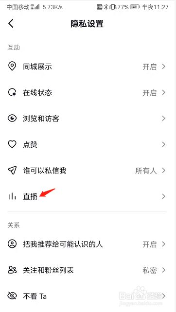 在抖音设置内,点击隐私设置,点击直播,点击展示上榜记录,将展示上榜记录选项右边的开关打开即可开启展示上榜记录功能