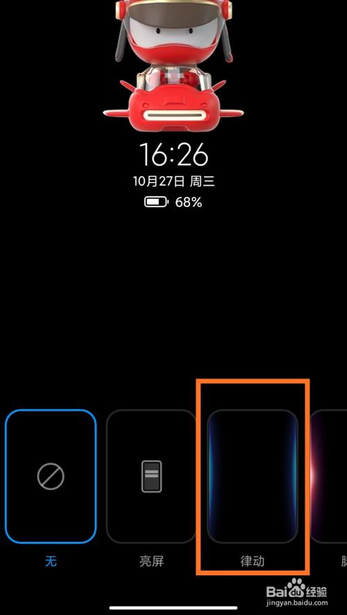 此时会显示几种提醒方式,点击选择一种方式,例如律动的光效,如图所示。