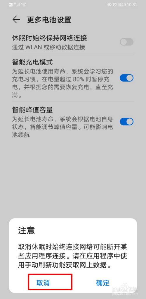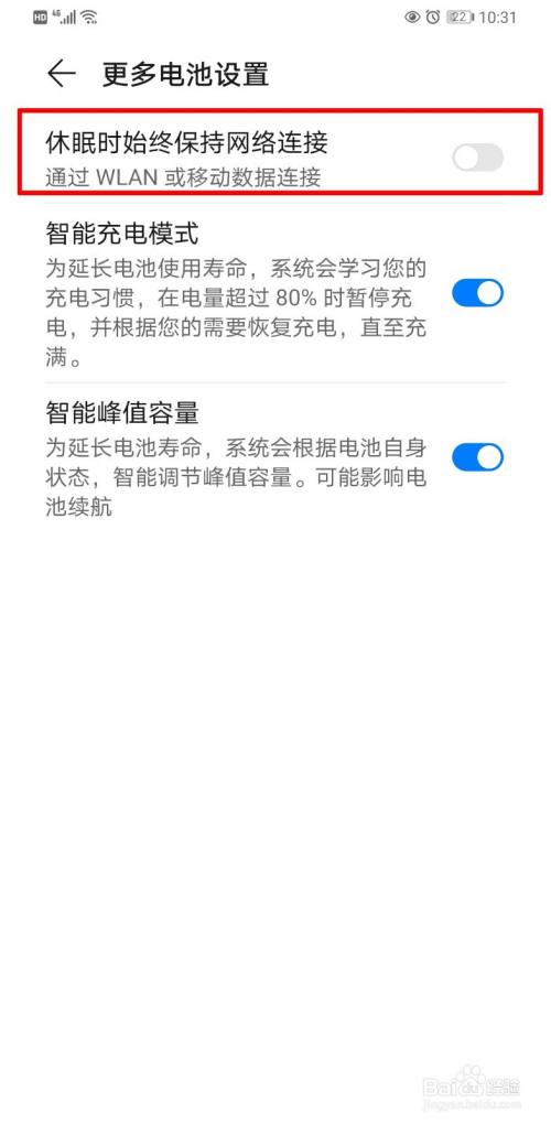 看下更多电池设置里面的“休眠时始终保持网络连接”的滑块是否打开。