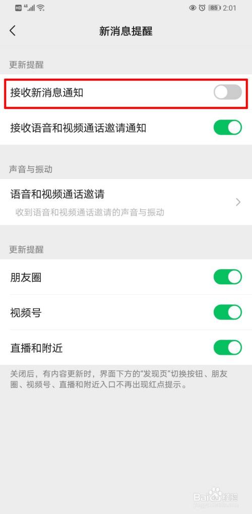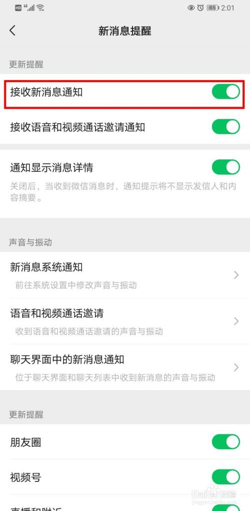 如果新消息通知滑块关闭了的话,打开滑块即可。