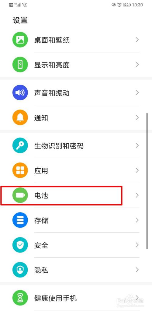 手机设置了休眠时不连接网络会导致锁屏后收不到微信。进入手机设置,点击设置里面的“电池”。