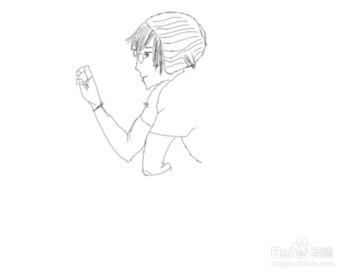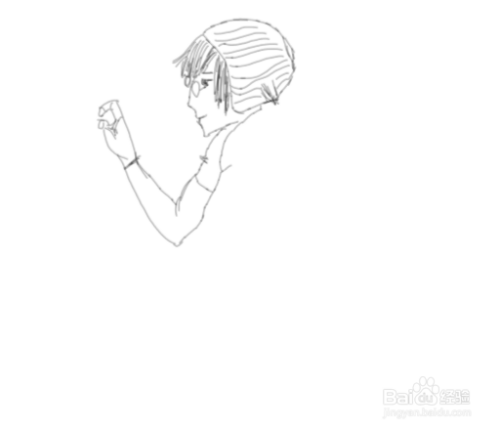 再在这只胳膊的前面再画出人物的另一只胳膊,如图所示: