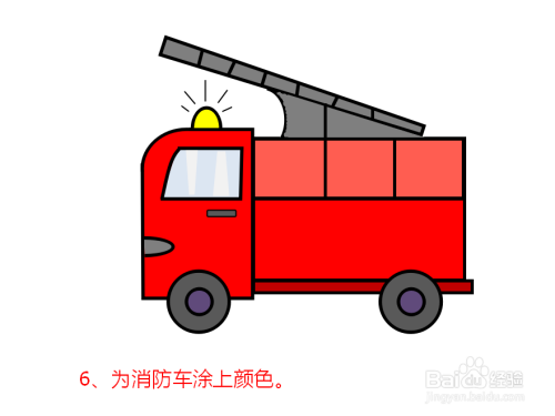 最后为消防车涂上颜色;简单画消防车简笔画就完成了。