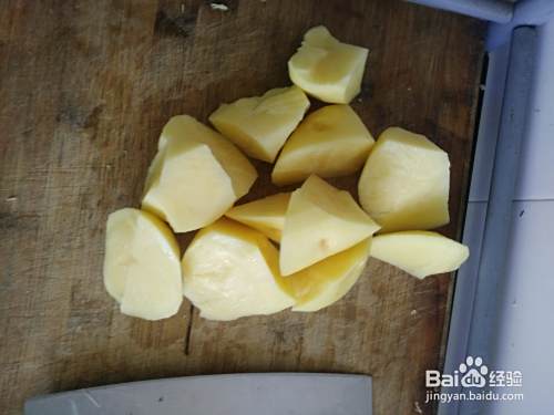 将猪脆骨洗净沥干水分后待用,蒜瓣拍扁后待用,土豆去皮后切滚刀块待用