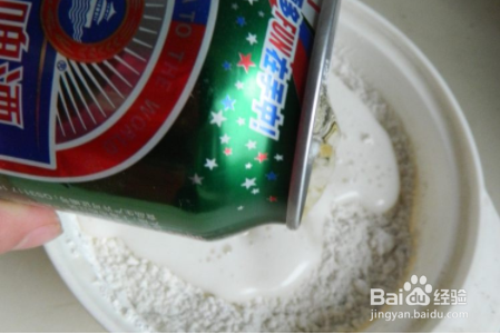加入150毫升啤酒,再加入50毫升清水混合拌均匀成为面浆。