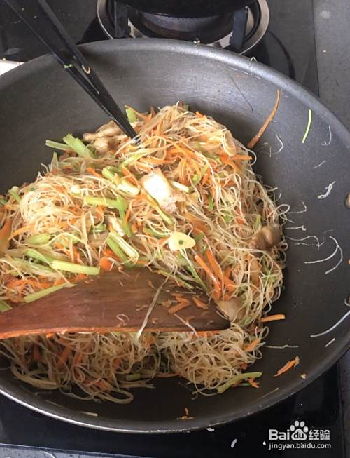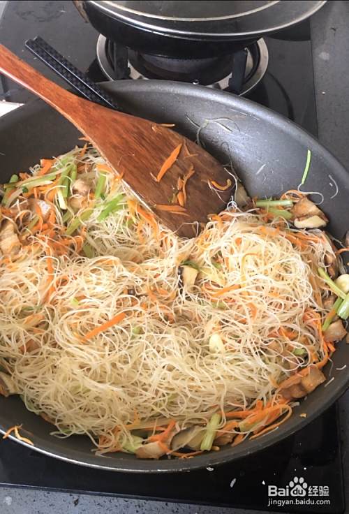翻炒一两分钟,把煮熟的面条(从白到透明,意思是熟的)翻炒均匀,调味料就差不多了