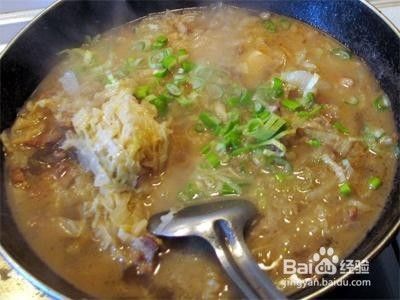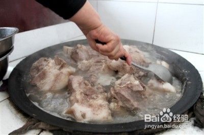 第四步是大骨冷水下锅,煮沸后漂去泡沫,肉汤一并倒入炖锅,文火煮约30分钟后加调料。