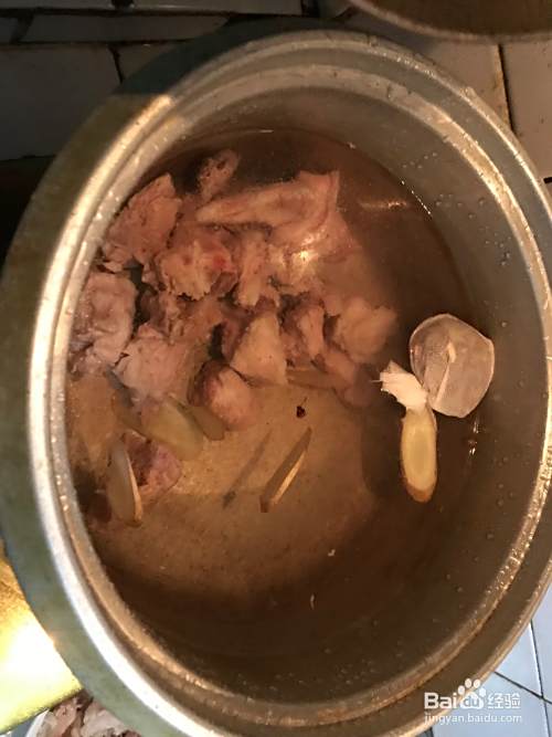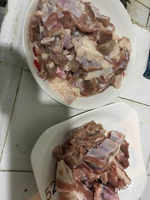 选上好的羊蝎子和羊肉洗干净,冷水入锅,放入姜片,料酒,过水去血,捞起来沥干水分。