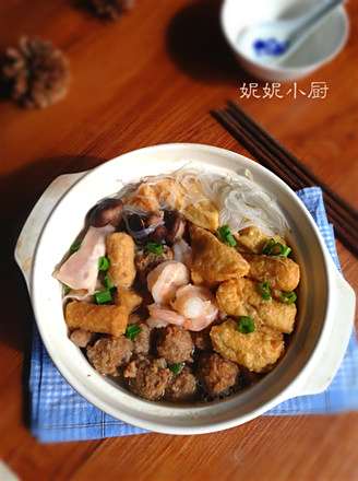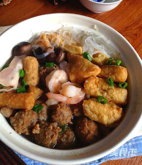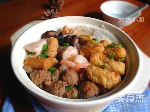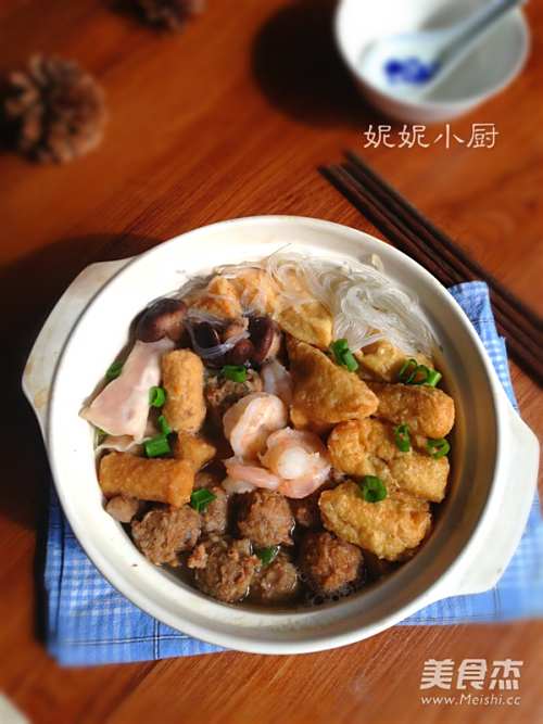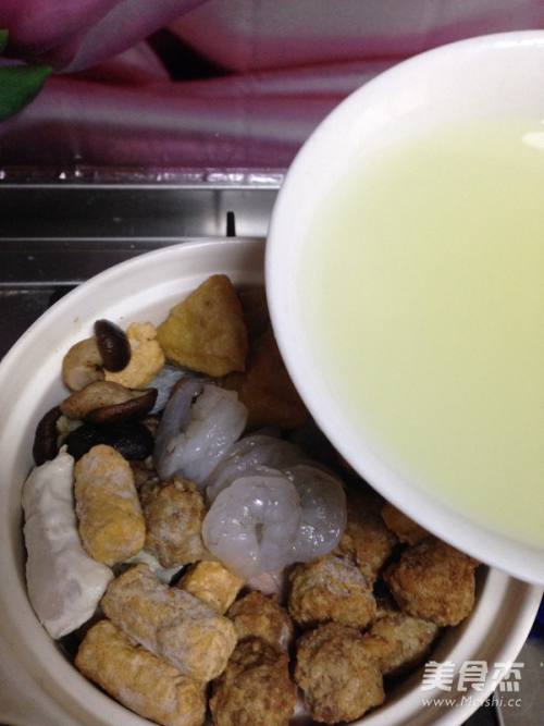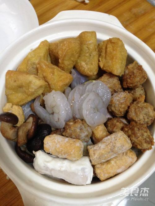 11最上面放入豆腐泡、丸子、香菇和虾仁等