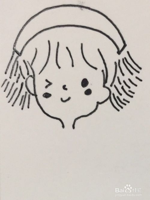 首先在白纸上,用黑色碳素笔画出女孩的头部轮廓。我们用笔画出女孩五官,在女孩头部画出发型。
