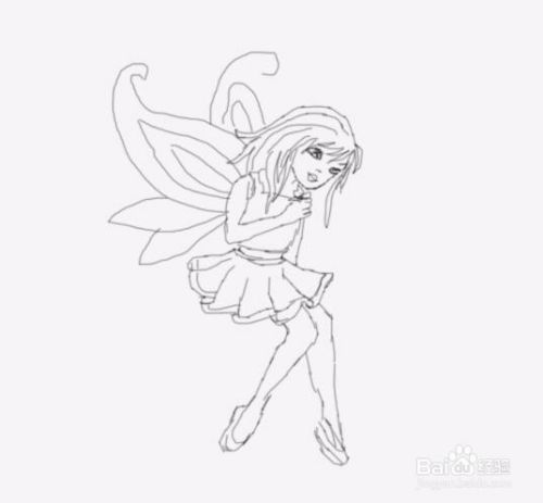 最后再在花仙子的背部上画出花仙子的两只翅膀,这样我们的花仙子就画好了,如图所示: