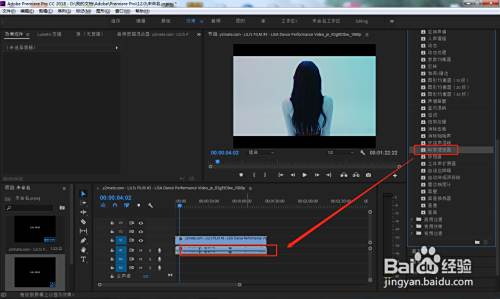 点击右侧效果窗口中的“音频效果”——“科学滤波器”,将该效果拖动到时间轴音频轨道上面。
