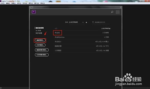 首先在电脑中打开PR软件,点击“新建项目”,创建一个视频剪辑项目。