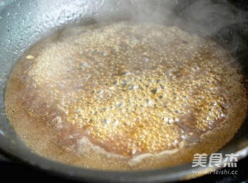 66.出炉后将盘子中的水份倒入锅中,倒入生抽,勾一个薄芡,淋到豆腐上,最后撒上葱花即可。