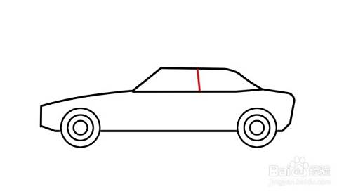 在轮廓上部分用横线和斜线勾画分割车上部为窗,用斜线分割窗为左右两部分。