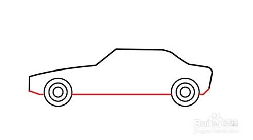 用横线连接轮子勾画底盘线,用斜线连接底盘线和轮廓线。