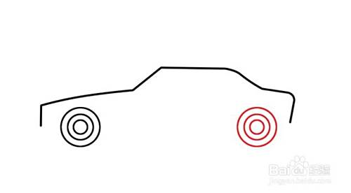 用步骤2的方法在轮廓线右边下方画另外一个轮子。